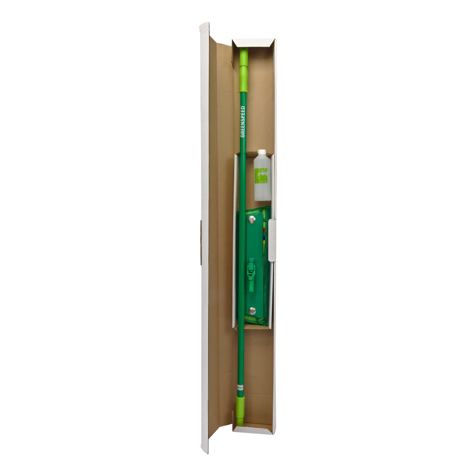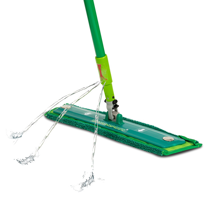 An innovative floor cleaning system featuring our advanced microfiber technology and ergonomic handle with built-in refillable water reservoir and triple-spray nozzle for fast and easy cleaning of any floor.